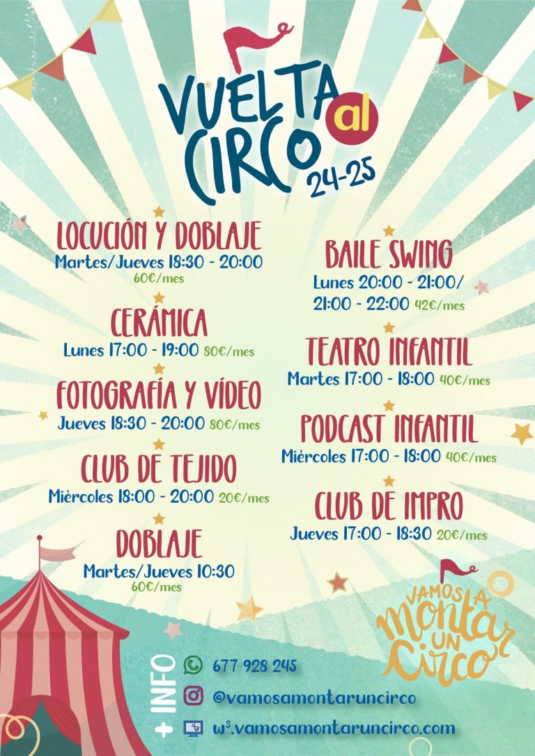 Mientras tanto os invitamos a visitar nuestro instagram, donde viene toda la información actualizada y este calendario de actividades en imagen para que veáis qué cositas vamos a hacer en el circo y el teléfono en el cual podéis reservar la actividad.